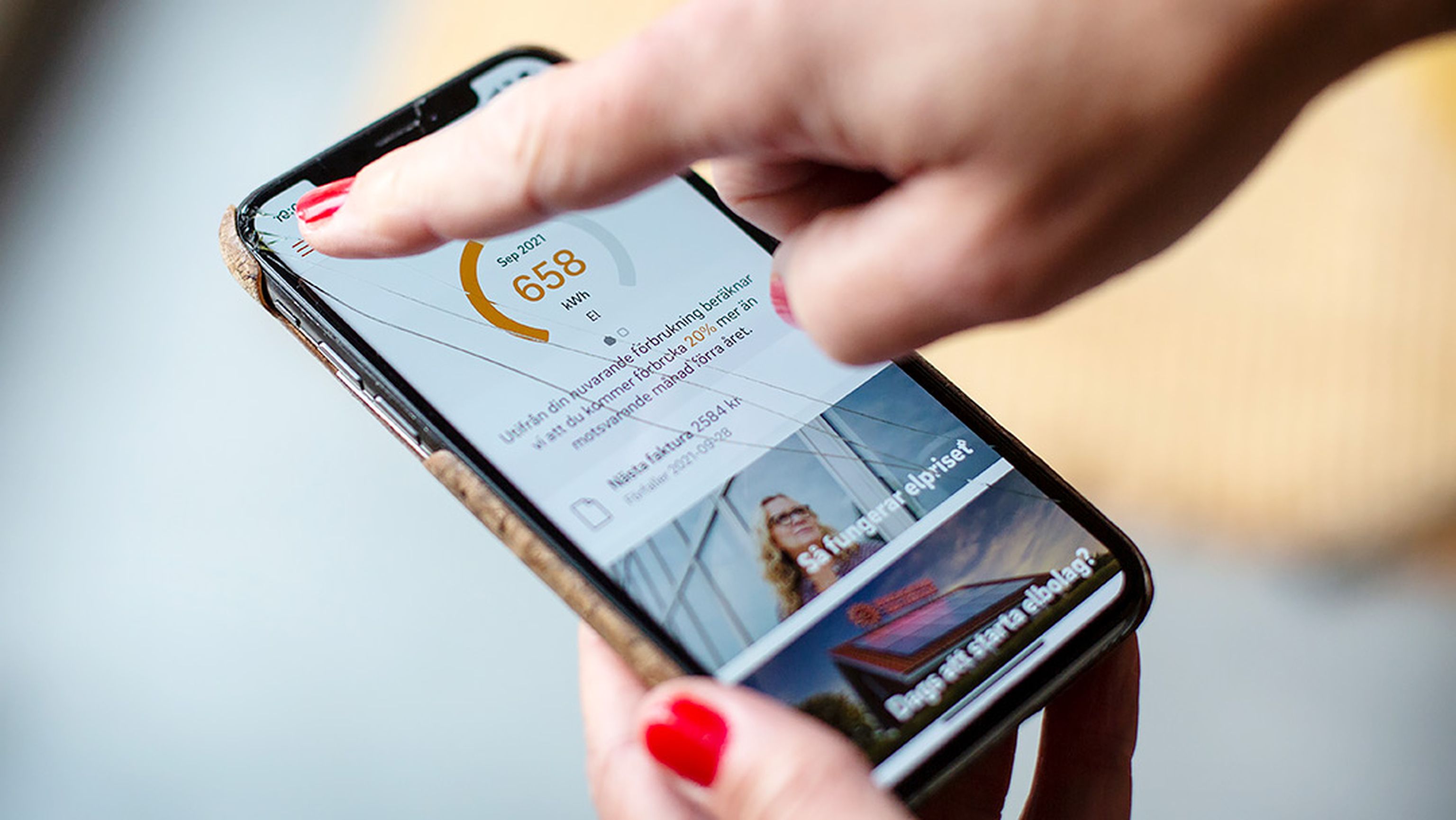 Mikael Bladh er tilfreds med E.ON’s app, som den ser ud i dag. Kunden kan gøre det samme som på ”Mine sider”, f.eks. følge elforbrug og omkostninger ved hjælp af diagrammer. Der findes også en oversigt over tidligere fakturaer.